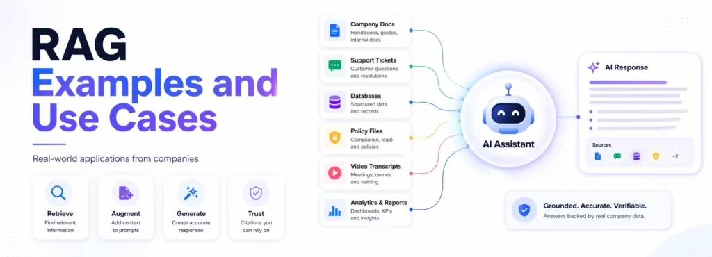 In this guide, we are not just listing RAG examples. For every example, you will see the company, use case, data source, RAG workflow, architecture pattern, business value, and the practical lesson you can use while building your own RAG system.